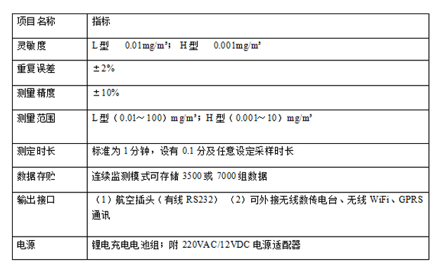 6) 檢測范圍:(0.01~100) mg/m3;(0.001~10)mg/m3;