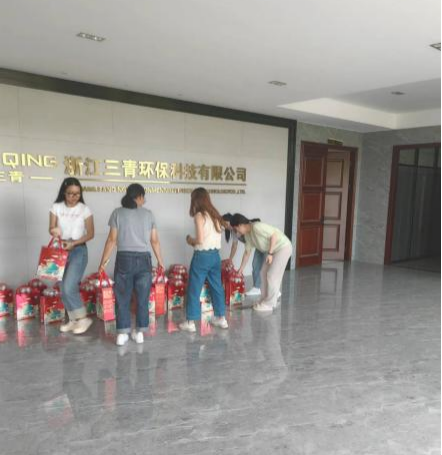 又是一年端午節,情濃粽香飄滿街。濃濃粽香,綿綿情長。在端午節即將來臨之際,為感謝全體員工一直以來為公司發展付出的辛勤努力,2024年6月3日下午,浙江三青環??萍加邢薰拘南祮T工,為全體員工提前發放端午福利,讓員工深切感受到了企業大家庭的關懷和溫暖。中午 11:30分,福利發放工作在三青環保上虞總部行政部的組織安排下有條不紊的進行,大家相互配合搬運、分配、分發端午福利:福滿五芳,粽情五月。一份粽子、一份關懷,粽子帶來的不僅是味覺上的享受,更多的是美好的祝福!